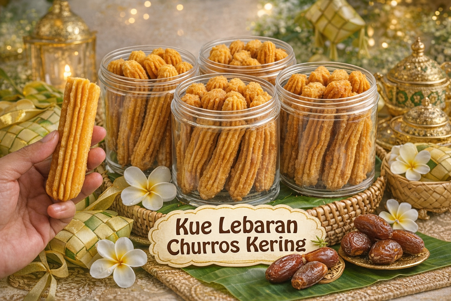 Kue kering churros wijen dibuat dengan bentuk khas churros yang unik, dipadukan dengan taburan wijen gurih dan tekstur renyah saat digigit. Rasanya gurih-manis pas dan tidak bikin enek.