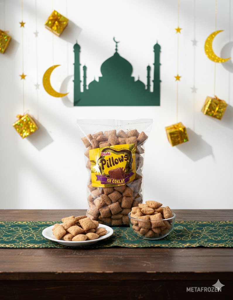 Pillow Coklat adalah camilan renyah berbentuk bantal kecil dengan isian coklat manis dan lembut di dalamnya. Perpaduan tekstur crispy di luar dan coklat lumer di dalam membuat rasanya nikmat dan disukai semua usia.