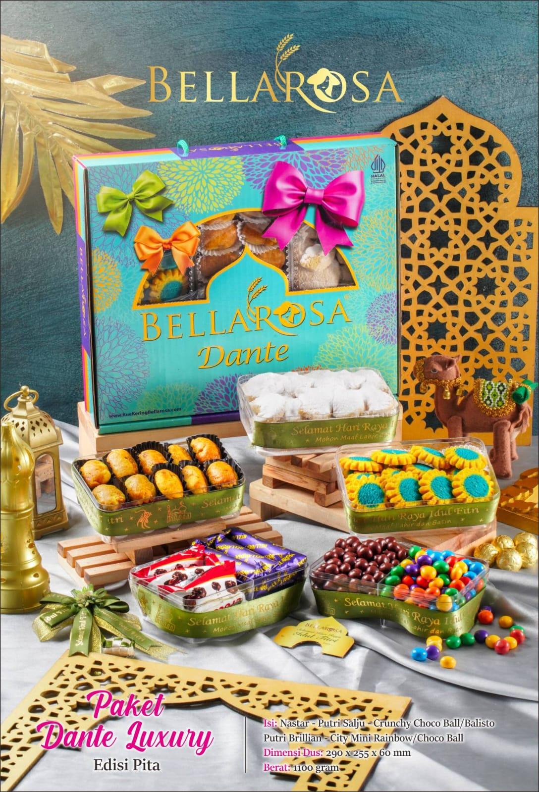 Paket Bellarosa Dante Luxury merupakan hampers kue kering kelas premium dengan desain ceria namun tetap elegan. Dikemas dalam box eksklusif Bellarosa dengan aksen pita warna-warni yang cantik, paket ini menghadirkan kesan mewah, hangat, dan istimewa untuk momen Hari Raya Idul Fitri.
