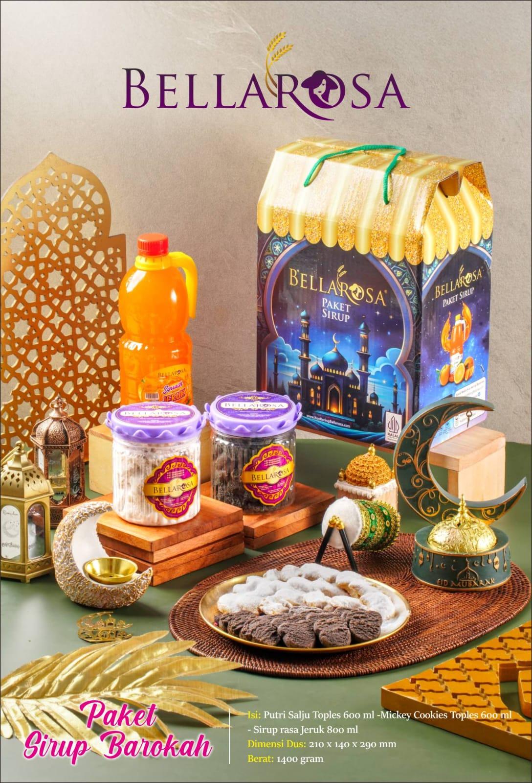 Paket Bellarosa Sirup Barokah merupakan hampers spesial Hari Raya yang memadukan kue kering klasik dan sirup segar dalam satu kemasan elegan. Mengusung nuansa Islami dengan desain box eksklusif Bellarosa, paket ini menghadirkan kesan hangat, mewah, dan penuh keberkahan untuk momen Idul Fitri.