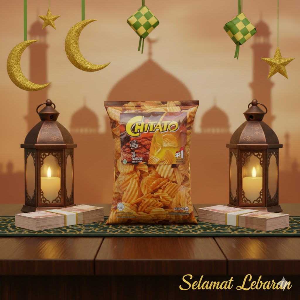 Chitato adalah keripik kentang bergelombang dengan tekstur tebal dan renyah, serta rasa gurih khas yang kuat. Setiap gigitan terasa kriuk dan nikmat, cocok dinikmati sebagai cemilan harian, teman santai, maupun suguhan untuk tamu.